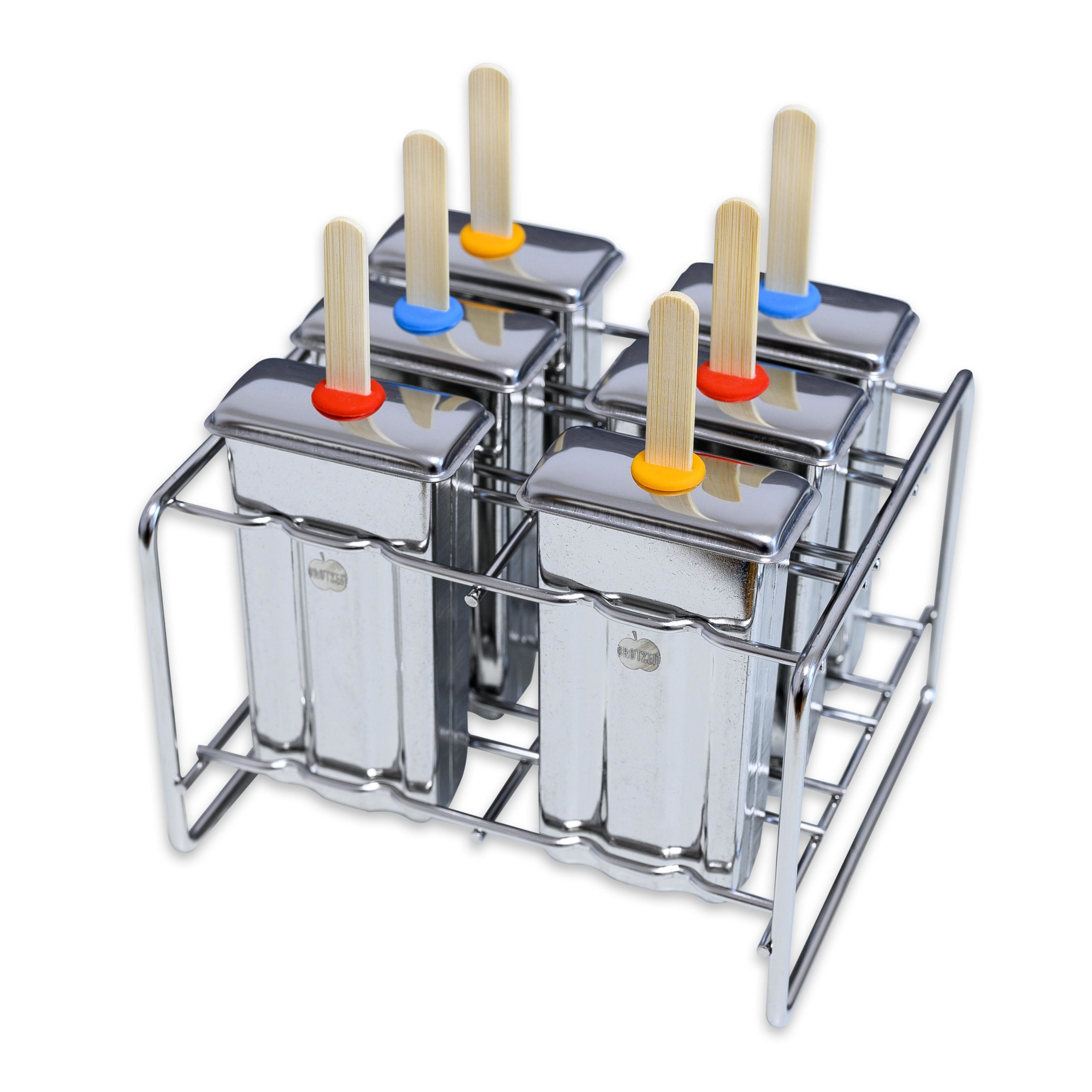 Eisformen 6er Set eckig mit Ständer aus Edelstahl pop tray
