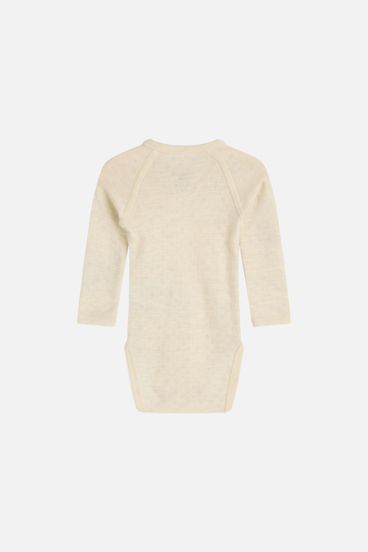 Langärmeliger Body aus weicher, dehnbarer Seiden-Wollmischung mit Pointelle-Muster und Wickelverschluss auf der rechten Seite sowie zwischen den Beinen. Dieses Produkt ist Oeko-Tex 100® zertifiziert.