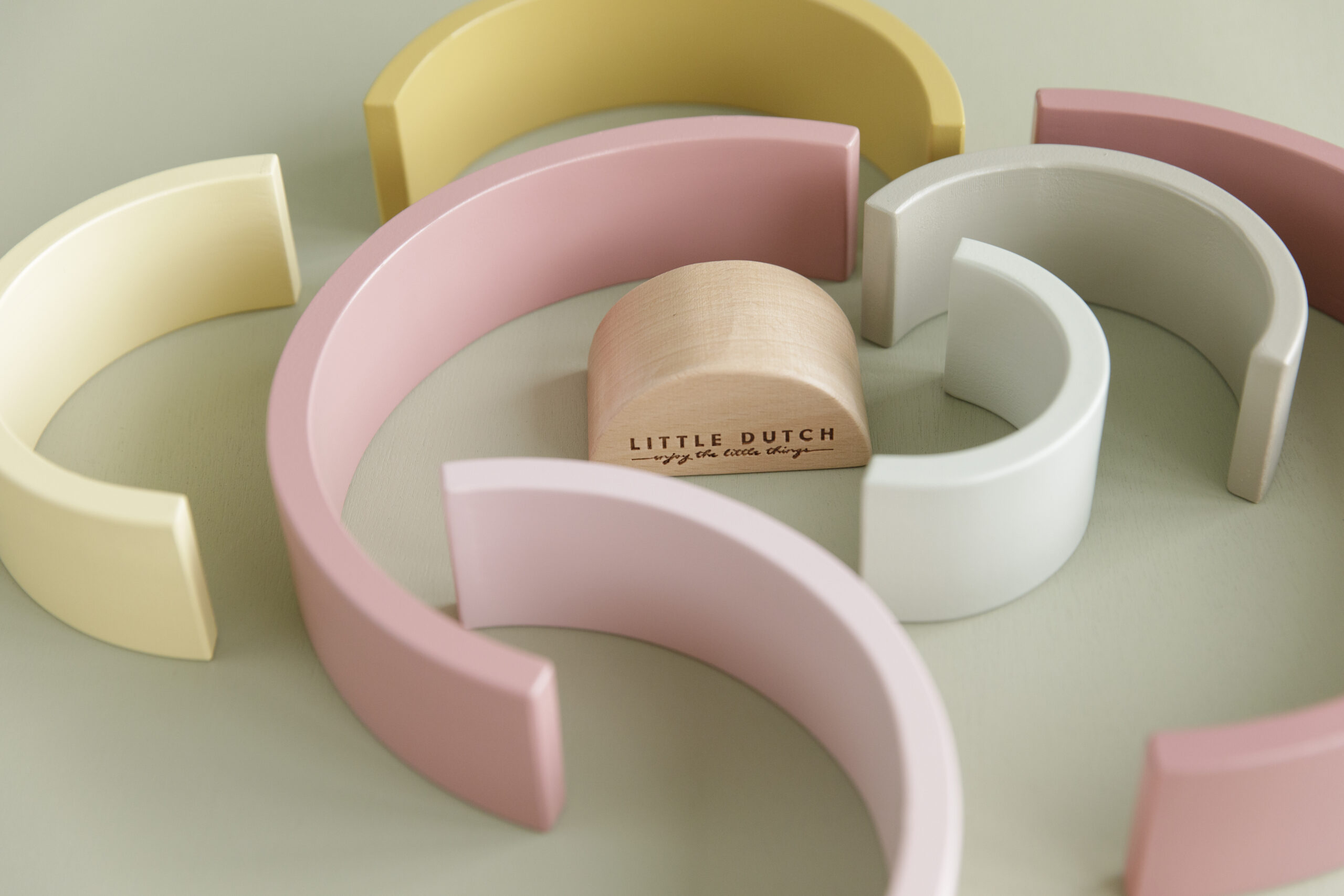 Stapeln, sortieren und bauen! Dieser Regenbogenstapler in Rosa-, Gelb- und Grüntönen bietet unendlich viele kreative Möglichkeiten, die über das reine Stapeln zu einem Regenbogen hinausgehen. Bauen Sie Skulpturen, kreieren Sie Tunnel für Züge und Autos, nutzen Sie Ihre Fantasie und Sie werden endlose Ideen finden, um mit den Bögen zu spielen. Der aus Holz gefertigte Regenbogenstapler regt die Fantasie an und fördert die Feinmotorik. Entdecken Sie die Vielseitigkeit dieses Spielzeugs und lassen Sie sich von den unzähligen Möglichkeiten überraschen, wie es genutzt werden kann. Außerdem ist es eine reizvolle Ergänzung für jedes Kinderzimmer.