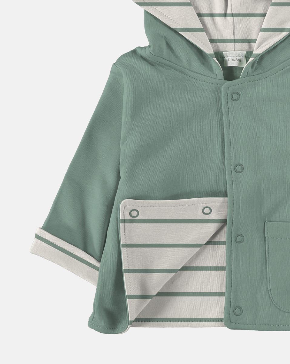 Dank zwei Lagen Pima-Baumwolle schützt sie Ihr Baby vor Temperaturschwankungen. Die Sira-Jacke ist das perfekte Kleidungsstück, um es in der Babytasche zu tragen und bei Nachmittagsspaziergängen oder kalten Morgen zu verwenden. Es ist auch ideal über dem Schlafanzug, wenn das Baby aufwacht. Ein unverzichtbares Kleidungsstück für Babys im Frühjahr und Sommer. Darüber hinaus finden Sie in unserem Online-Shop eine Auswahl an Accessoires für Mädchen und Jungen, die perfekt zu den Farben der Jacke passen, darunter Stirnbänder, Bandanas, Bodys und vieles mehr.