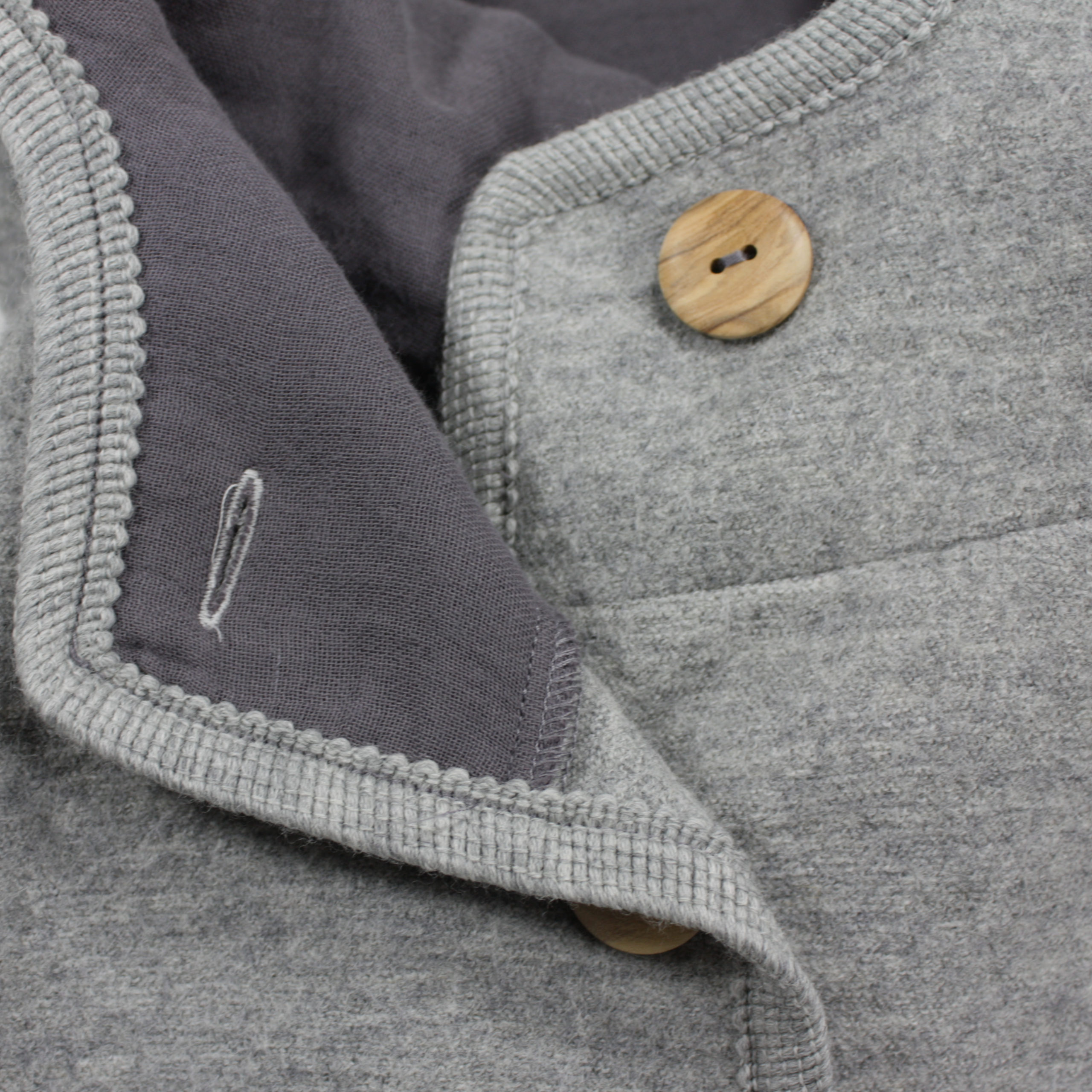 Die Kapuze ist mit weichen Musselin gefüttert. Die Jacke ist ungefüttert.